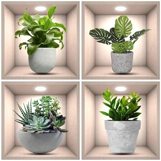3D Vase Wall Stickers | Flower Pot Wall Stickers | 3D Wall Stickers | 3D Wallpaper Self Adhesive Stickers |3D Vinyl Removable Wall Sticker for Living Room Dining Room Bedroom (Multi-Design)