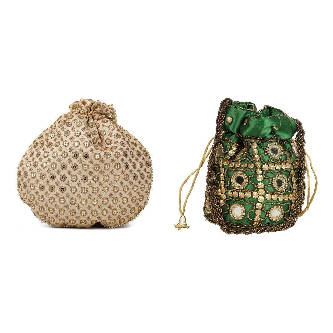 Combo – Designer Embroidered Potli Bag – Golden & Gold