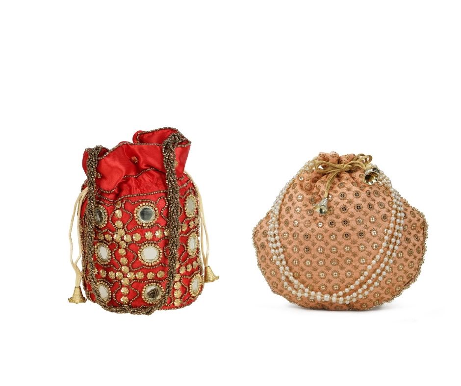 Combo – Designer Embroidered Potli Bag – Red & Beige
