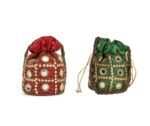 Combo – Designer Embroidered Potli Bag – Golden & Green