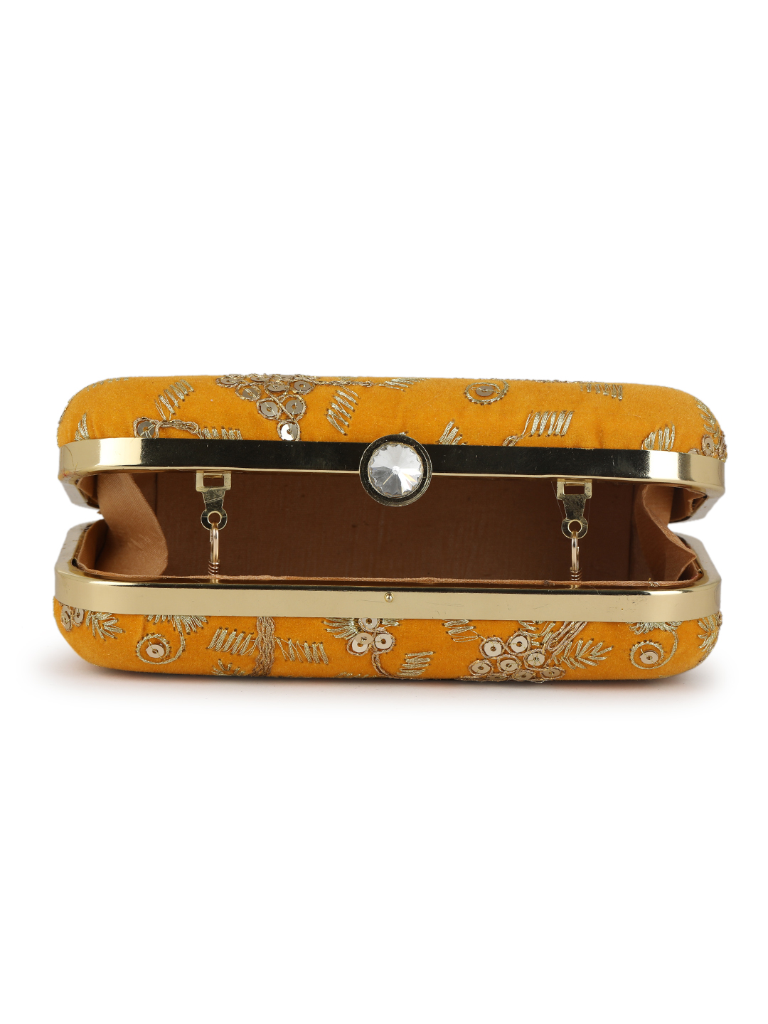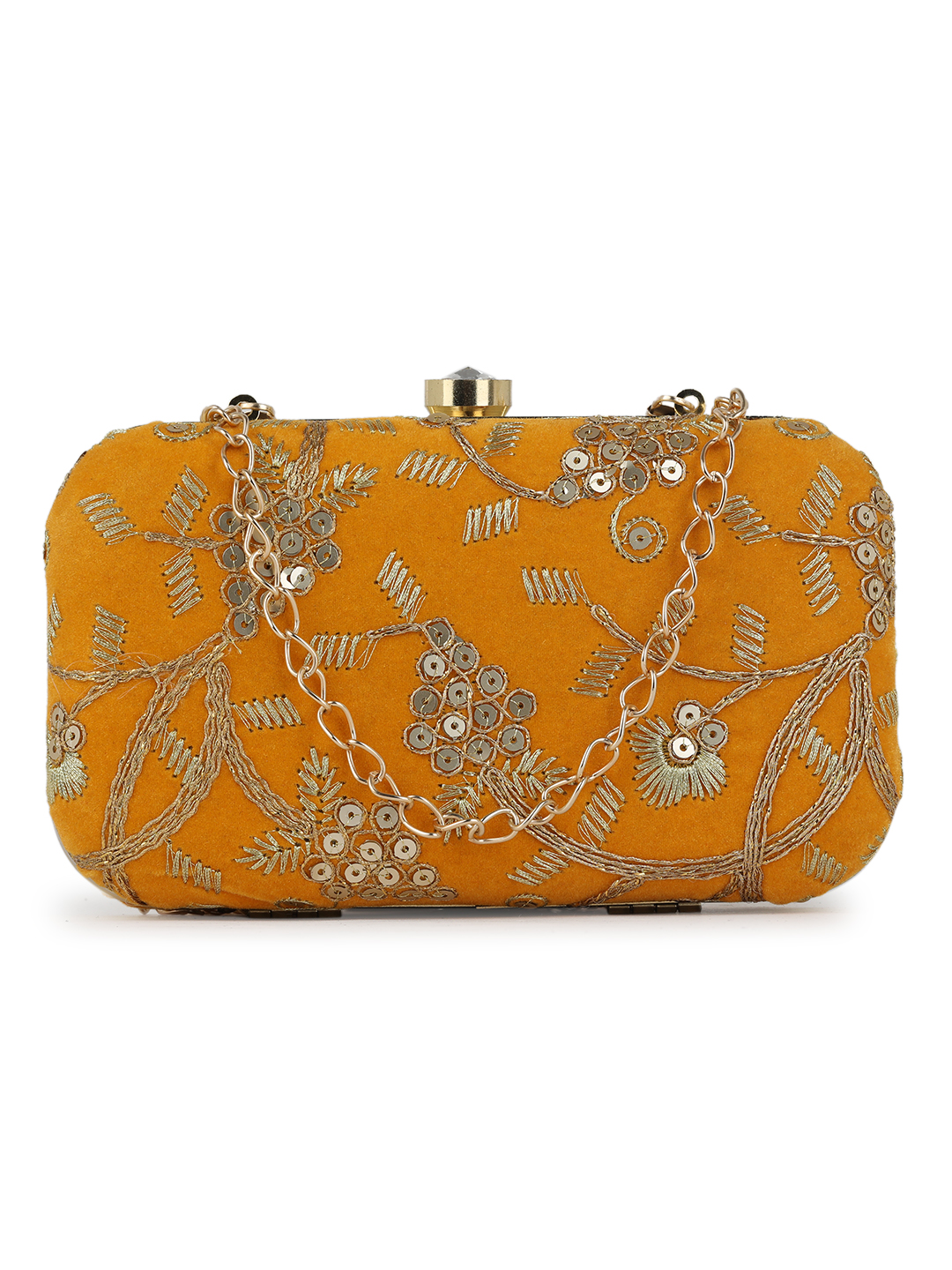 Home W_Bags Clutches Mustard Embroidered Box Clutch For Girls and womens