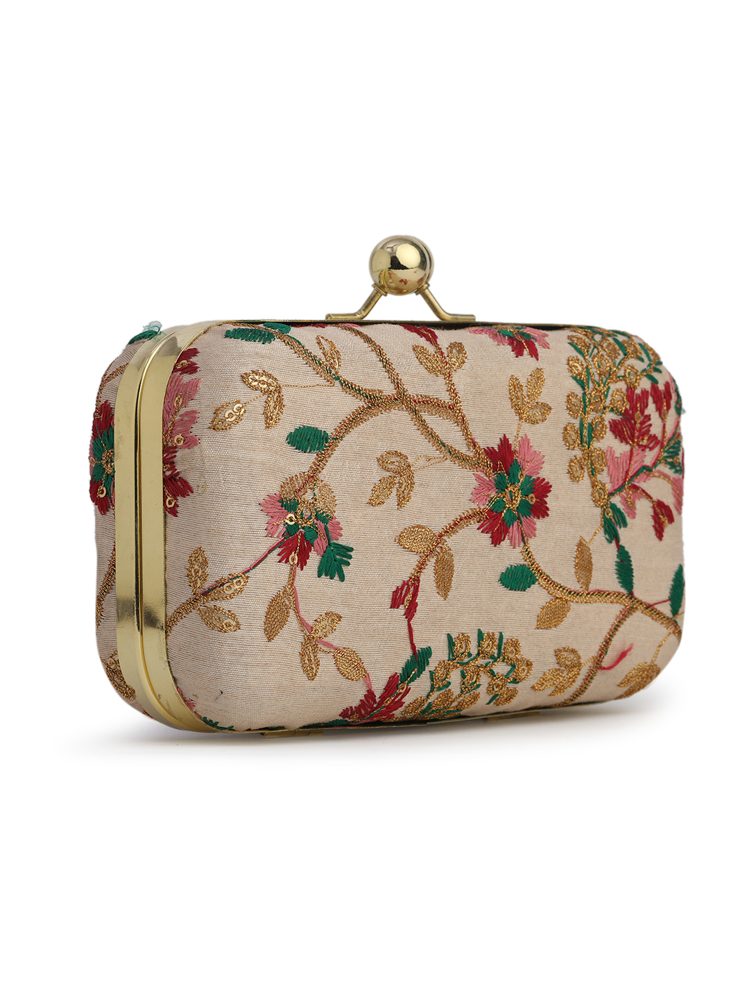 Home W_Bags Clutches Off White & Gold Embroidered Box Clutches For Girls and womens(Multicolor)