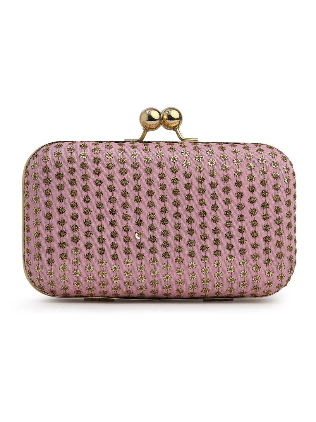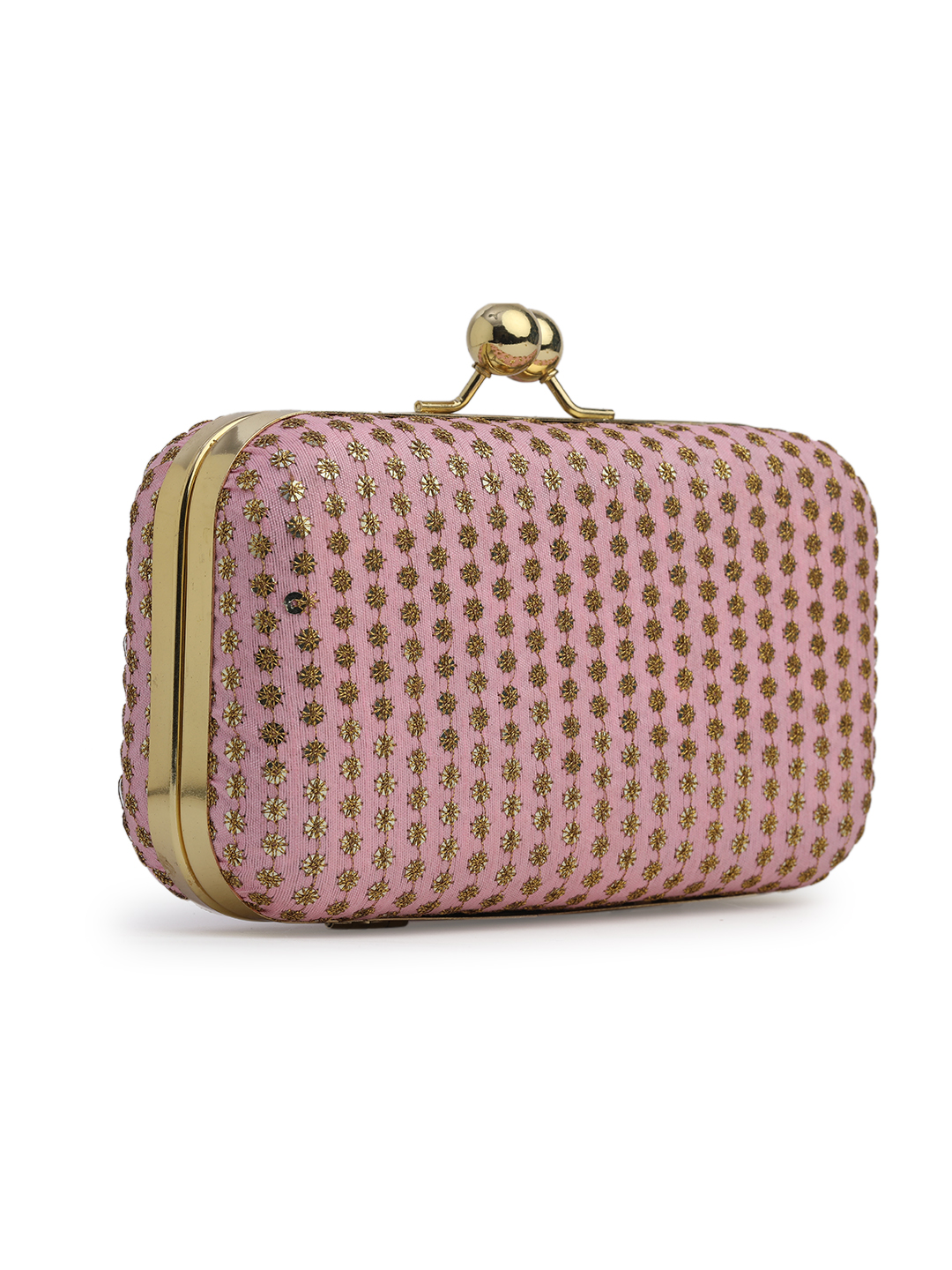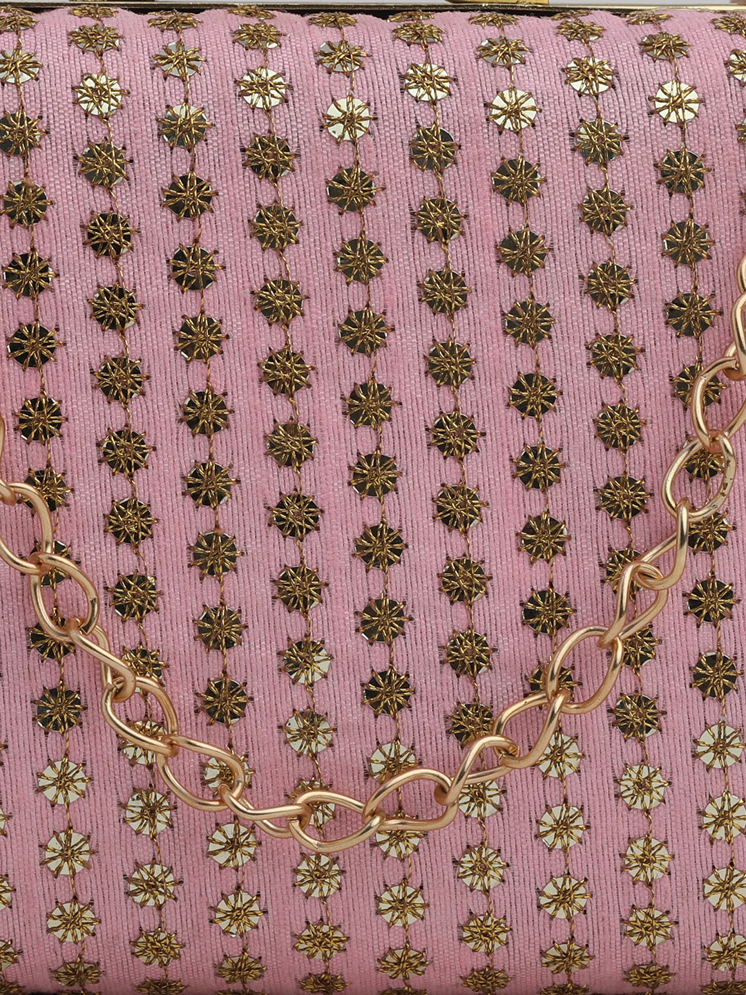 Pink & Gold Embroidered Box Clutches For Girls and womens