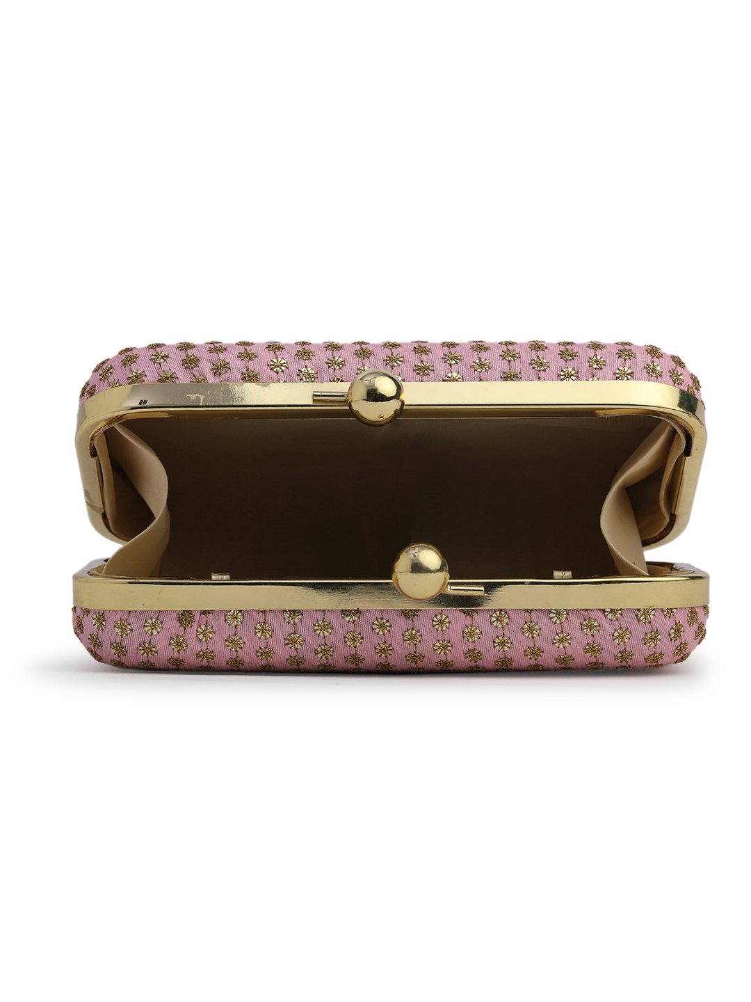 Pink & Gold Embroidered Box clutches, Has gold chain shoulder strap, 1 main compartment with Kiss closure