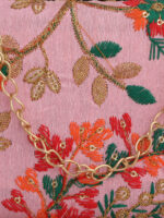Pink Embroidered Box clutches, Has gold chain shoulder strap, 1 main compartment with twist closure