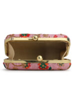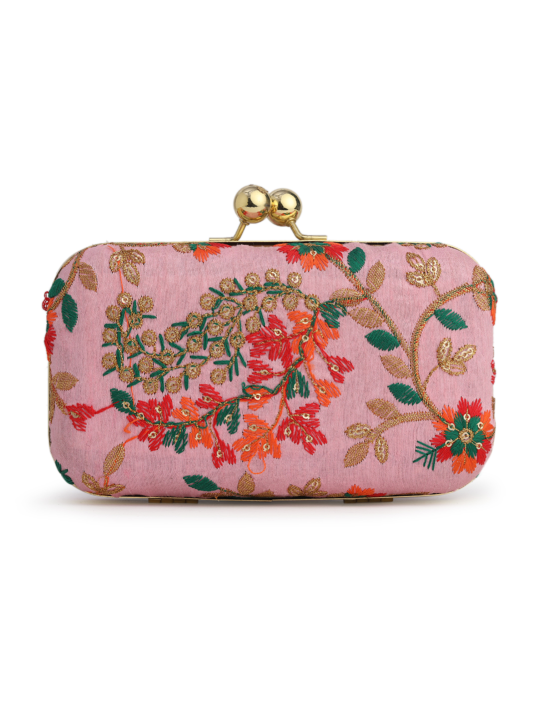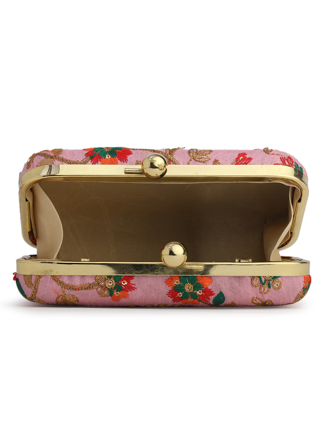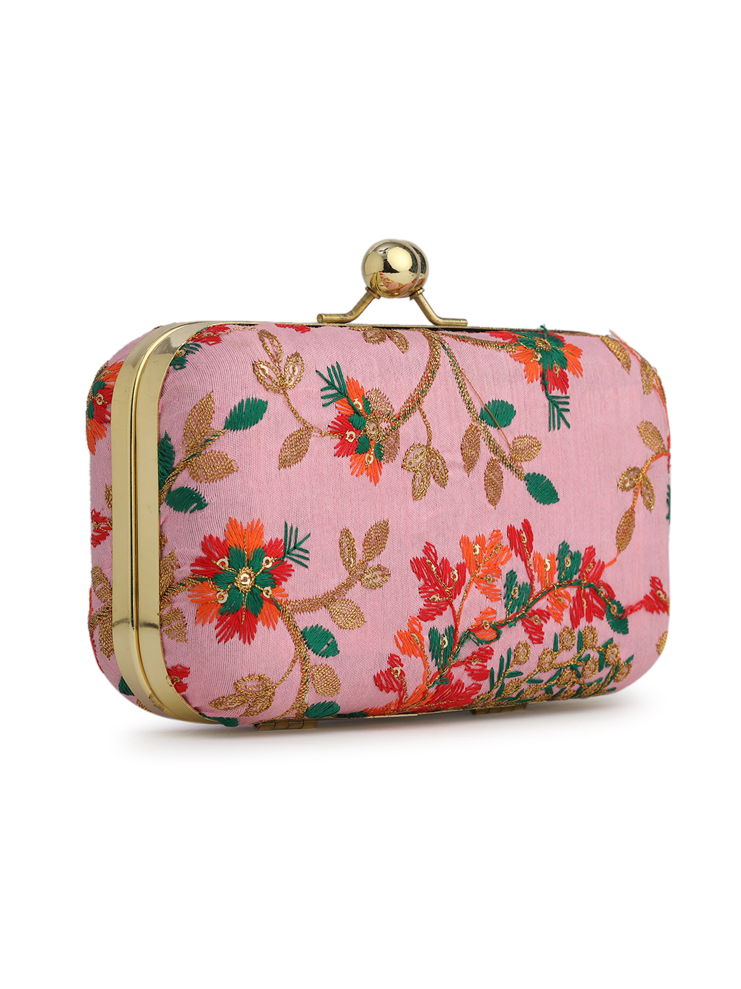 Home W_Bags Clutches Pink & Gold Embroidered Box Clutches For Girls and womens(01)