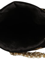Black and gold-toned embroidered potli clutches Has wrist loop 1 main compartment with drawstring closure Size & Fit Height: Width: Depth: Material & Care Wipe with clean, dry cloth