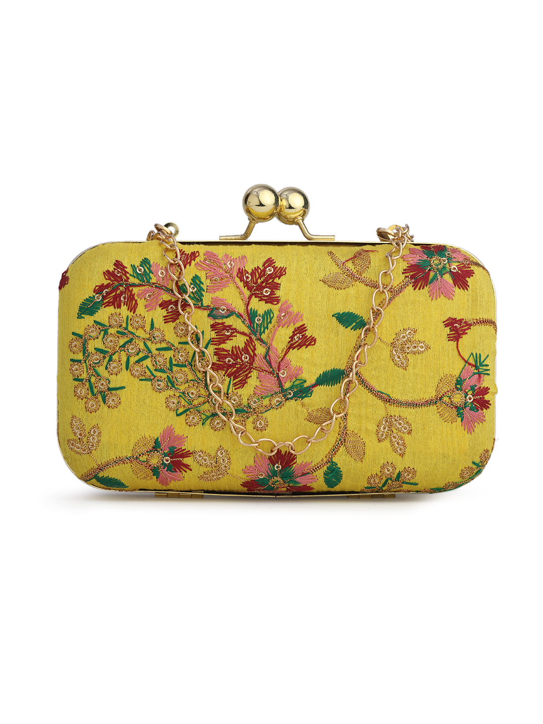 Yellow & Gold Embroidered Box Clutches For Girls and womens